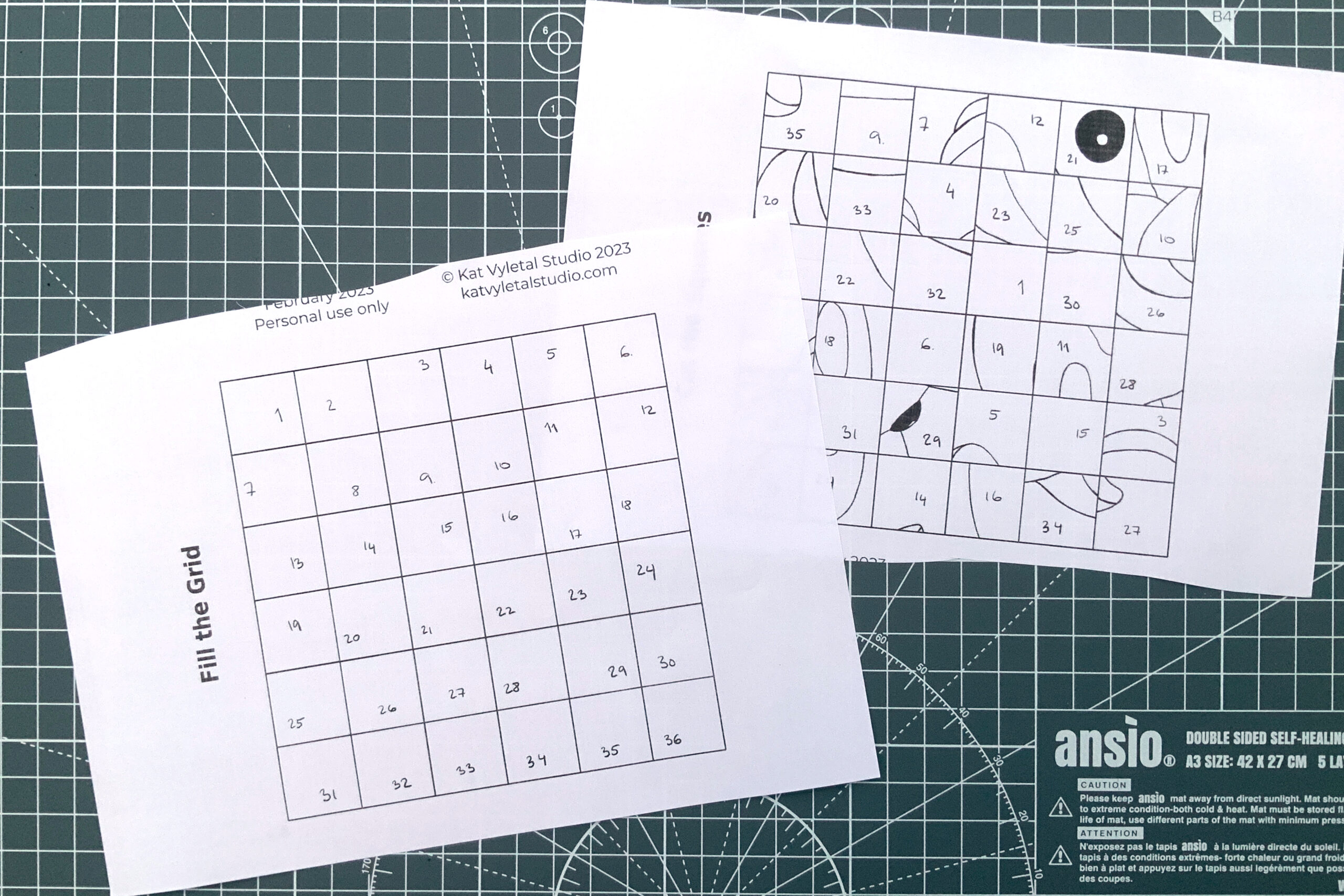 6. Notice the number on the square and find the same number on empty grid marked “fill the grid”